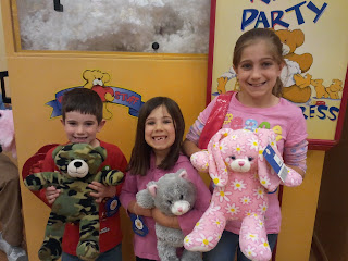I took the kids to build-a-bear workshop recently. They are doing great in school and I just wanted to reward them. Even though these are just stuffed animals, it is easy even for me as an adult to say "oh, these shirt/shoes/headband are so cute"! Ethan, who has always been the one to need a "comfort blanket", does not go to bed now without "Cami" (Yes, it's a girls name-we won't tell him!)