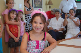 Mary turned 6 this year and was lucky to have lots of family and her very best friends at her party! She even knew what Brenna and Alicia's favorite colors were (her best friend's are twins) so she could pick out the "right colored crowns, mama!" Aunt Trisha and mommy made the castle cake from scratch and used a kit from Michaels store for the adornments. We ended up calling it (forgive me Lord) the "cake from hell". Those turrets, flowers, flags, anything added on would NOT stay put. We basically took a picture really quick and kept just holding the pieces up with our fingers. And if you look really close, see the glitter? I think it will never come out of all of the cracks in the kitchen floor!